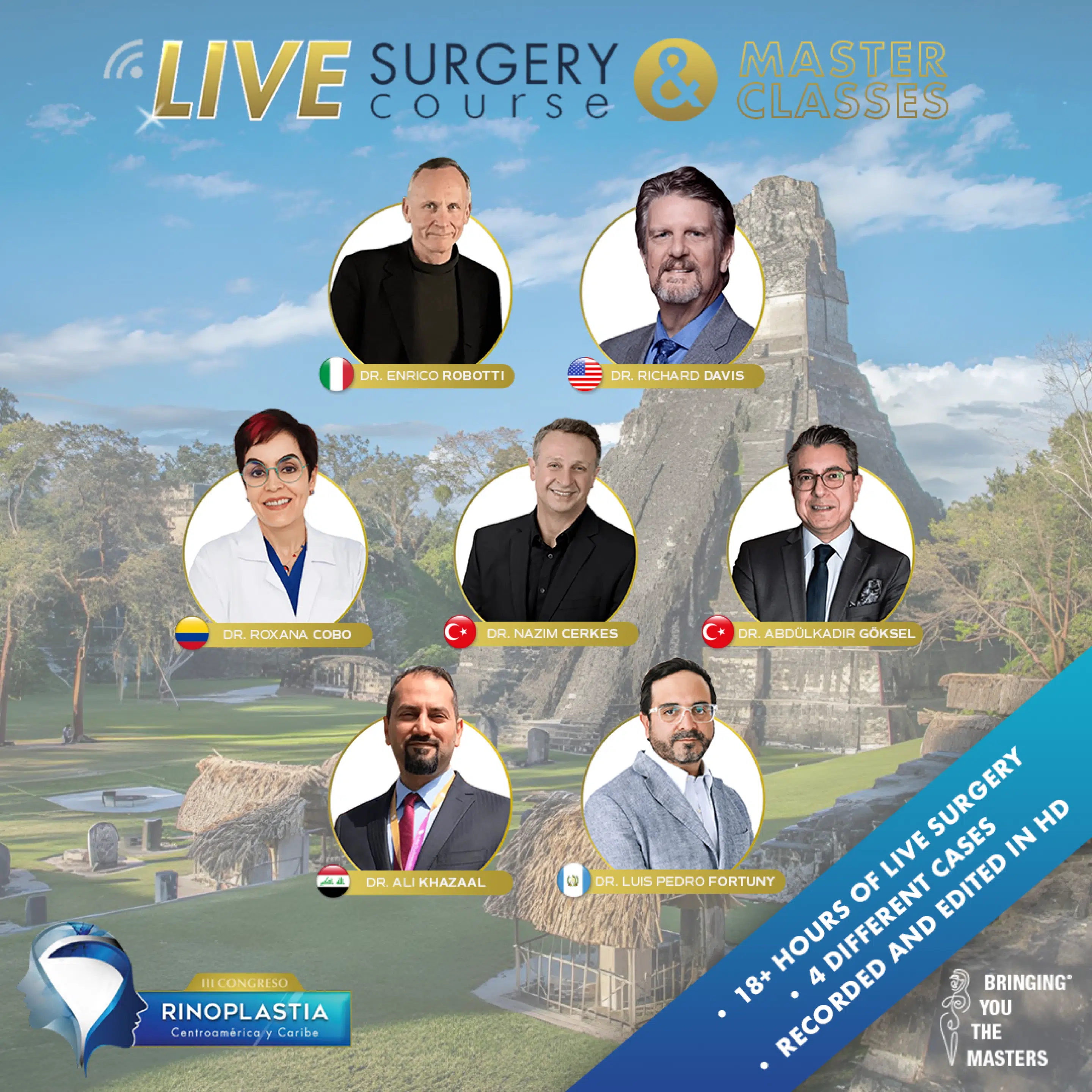 With over 7 hours of keynote lectures by the masters of preservation, hybrid & structural rhinoplasty + over 20 hours of live surgeries divided in 4 cases. Each case demonstrating tips and tricks in preservation, hybrid and revision rhinoplasty of 3 of the best rhinoplasty surgeons in the world. Both keynote lectures and live surgeries should upgrade your rhinoplasty knowledge and skills for the sole purpose of giving your patients more than optimal results.